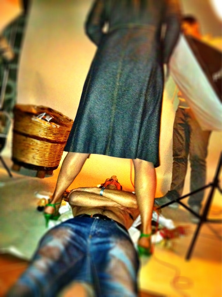 In un mondo di cuscini soffici e di piatti sopraffini lui ha scelto un cuscino di immondizia, avanzi di cibo e cartacce e ci riposa quieto, incurante del freddo (e del pubblico che circondava il set fotografico, come si vede dalla foto di backstage poco oltre) Chi non conosce il Doctor Gourmeta? Folle folletto sorridente che tutto sa e tutto assaggia, filma, fotografa, intervista e scompiglia le chiome delle più grandi stelle del mondo. Se si arriva nel suo campo d’azione si sta già subito meglio perché le onde che emana arrivano direttamente dal Mondo dei Grandi Sogni Possibili.